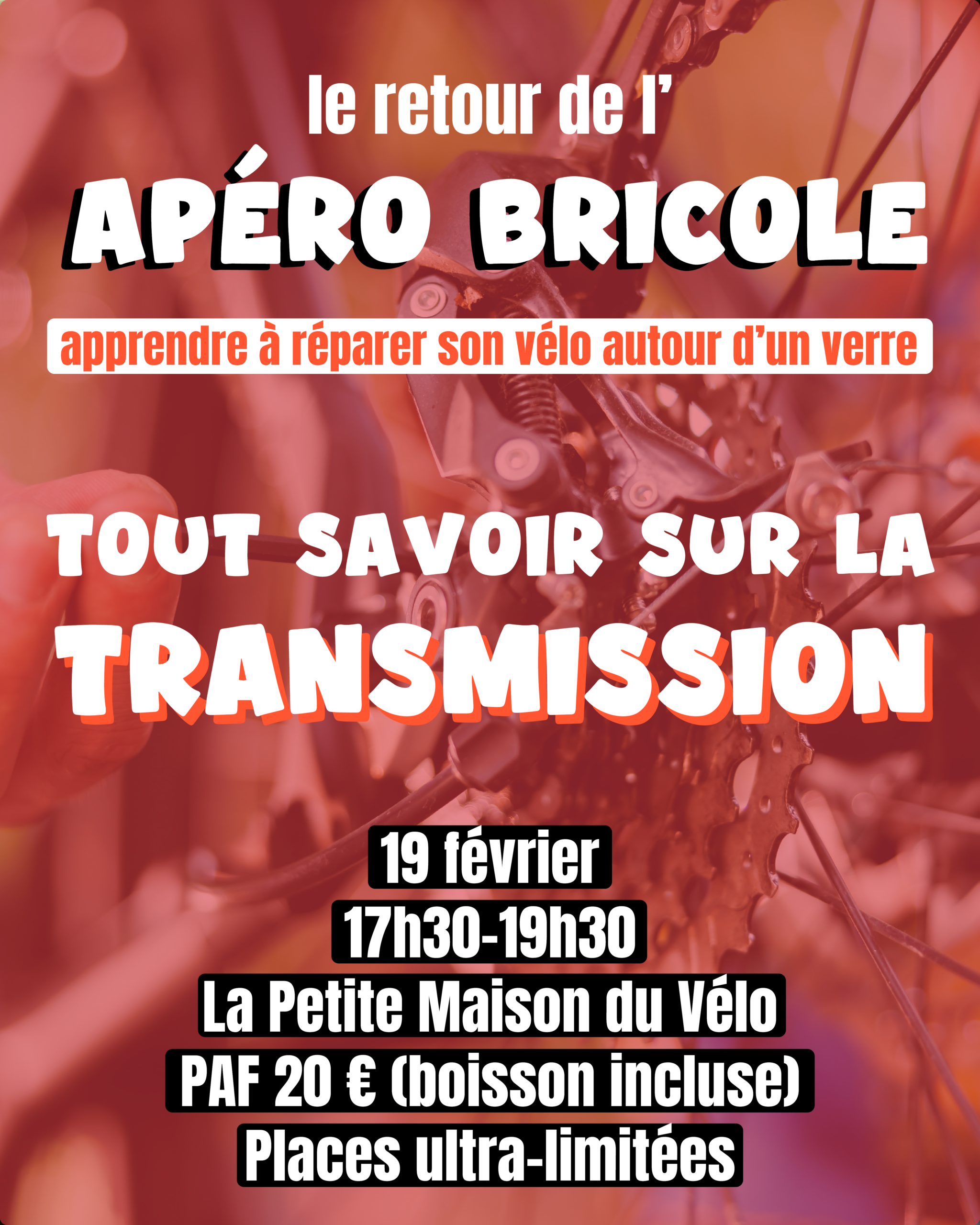 Un Apéro Bricole, c’est un moment convivial pour apprendre à réparer et entretenir son vélo, guidé·e par un·e mécano, tout en partageant un verre.